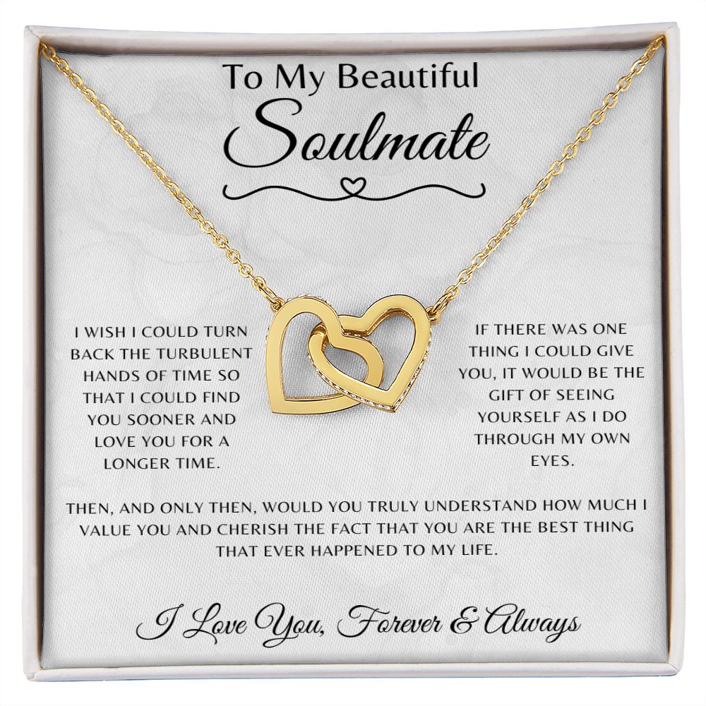 To My Beautiful Soulmate Necklace - To My Soulmate Through My Eyes Forever Love Message Card Jewelry - Interlocking Necklace